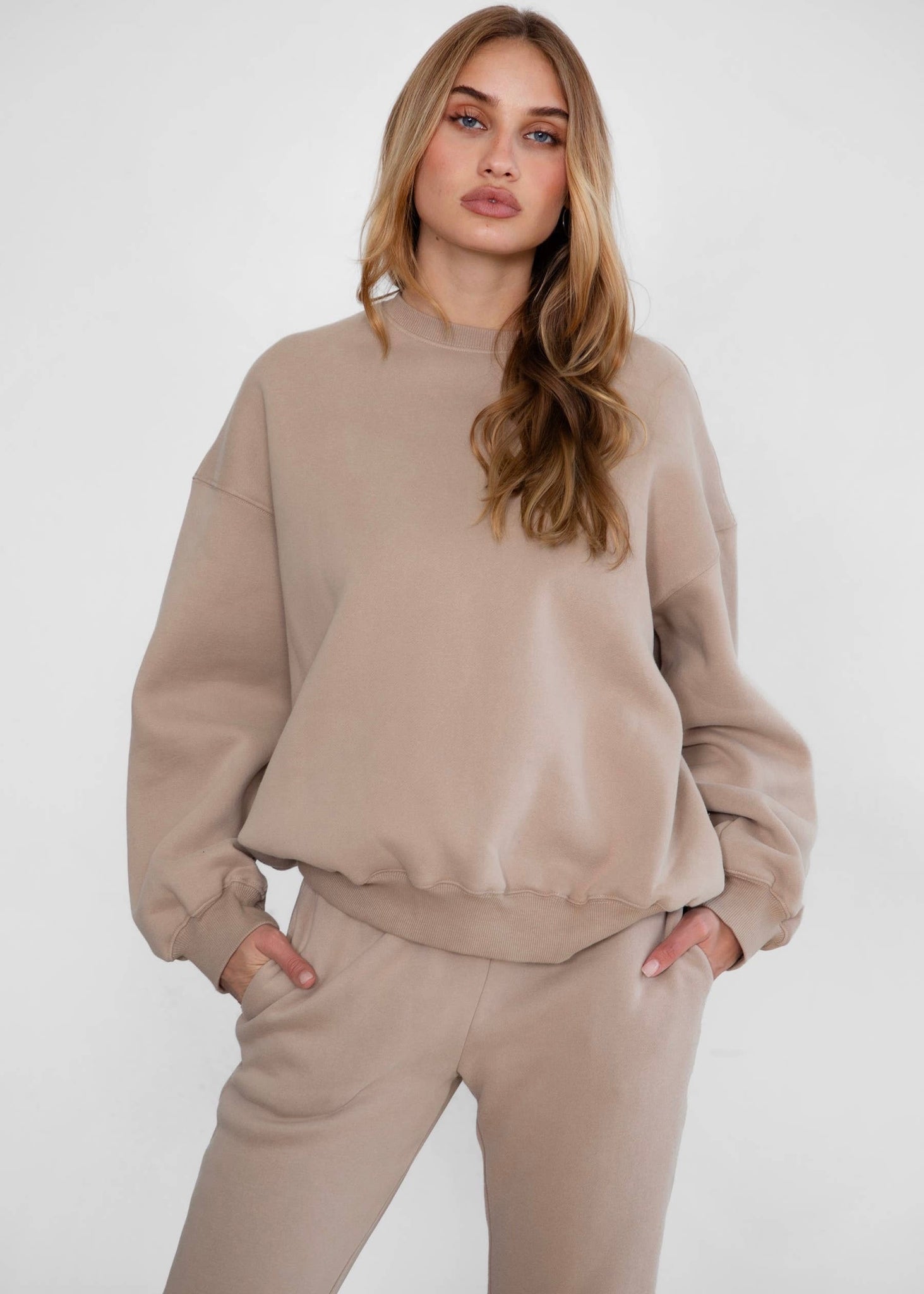 Featured In An Oversized Fit Ribbed Crewneck, Cuffs, and Hem Dropped Shoulder Design Matching Shades to the Essentials Fleece Collection