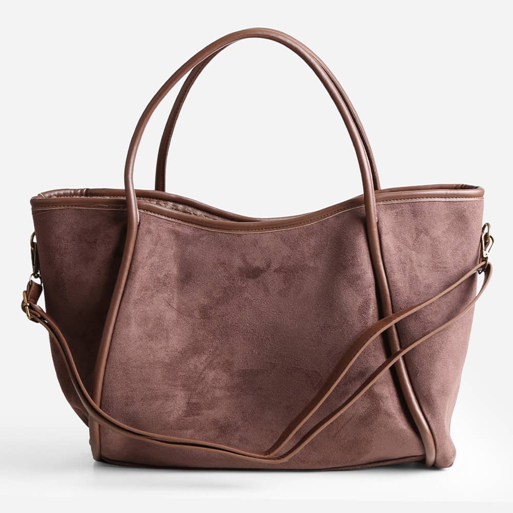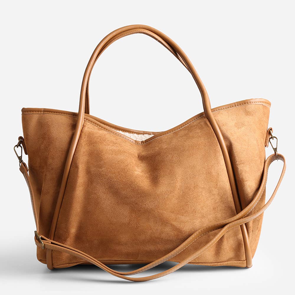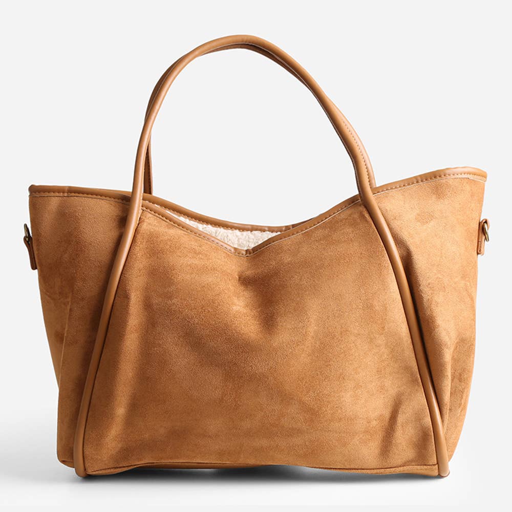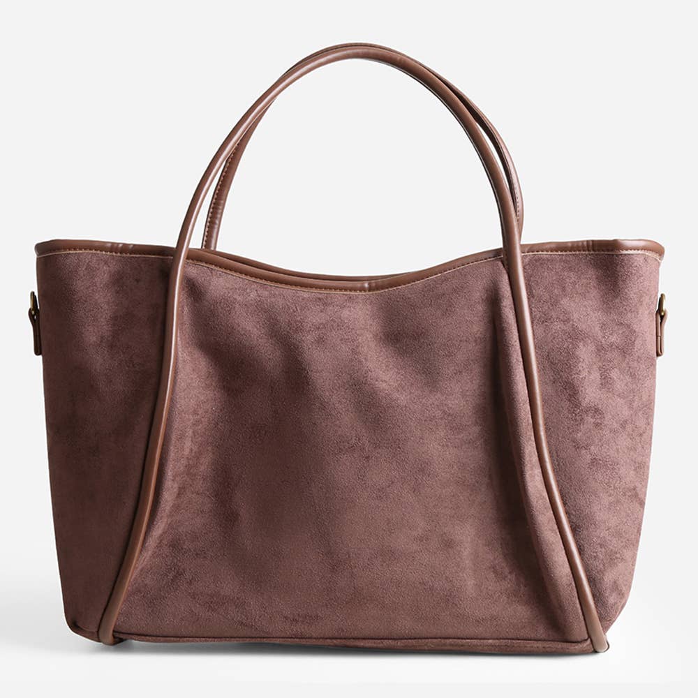 This suede-style tote bag blends elegance with practicality, featuring dual handles for easy carrying and a roomy interior to keep essentials organized. A versatile design that transitions seamlessly from work to casual outings while adding a touch of sophistication.