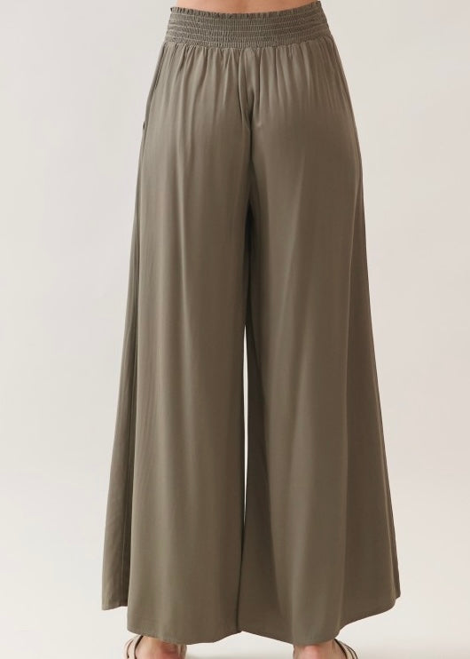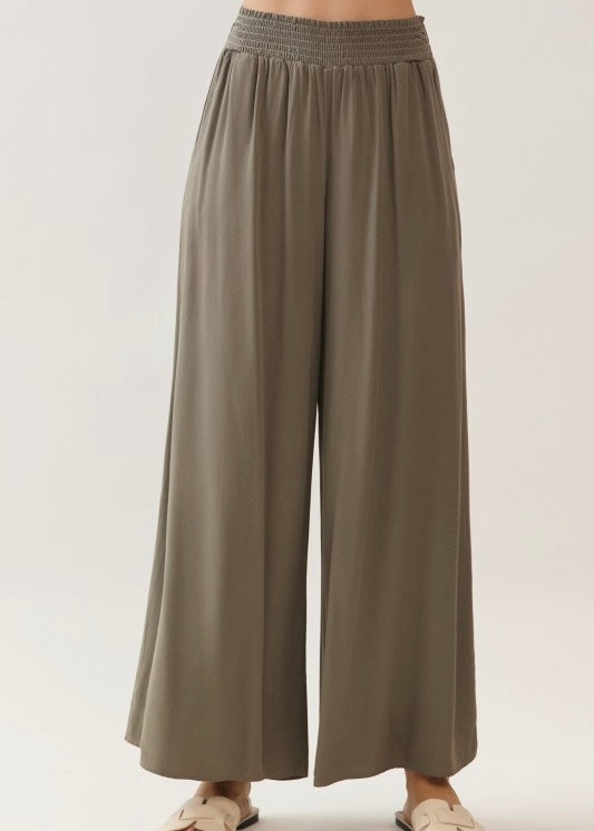 WAIST SMOCKED WIDE LEG PANTS