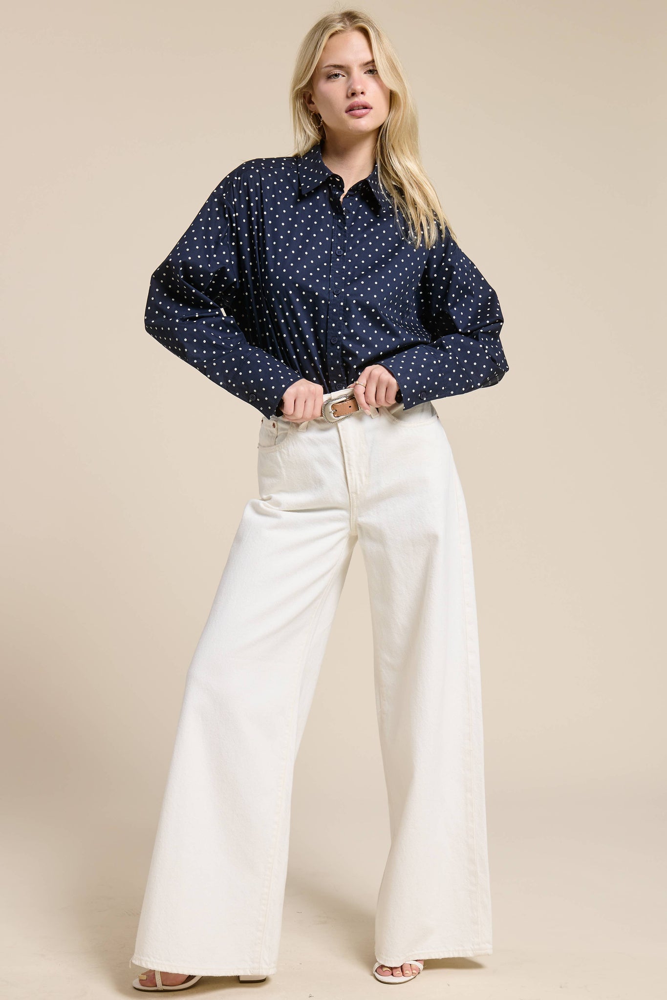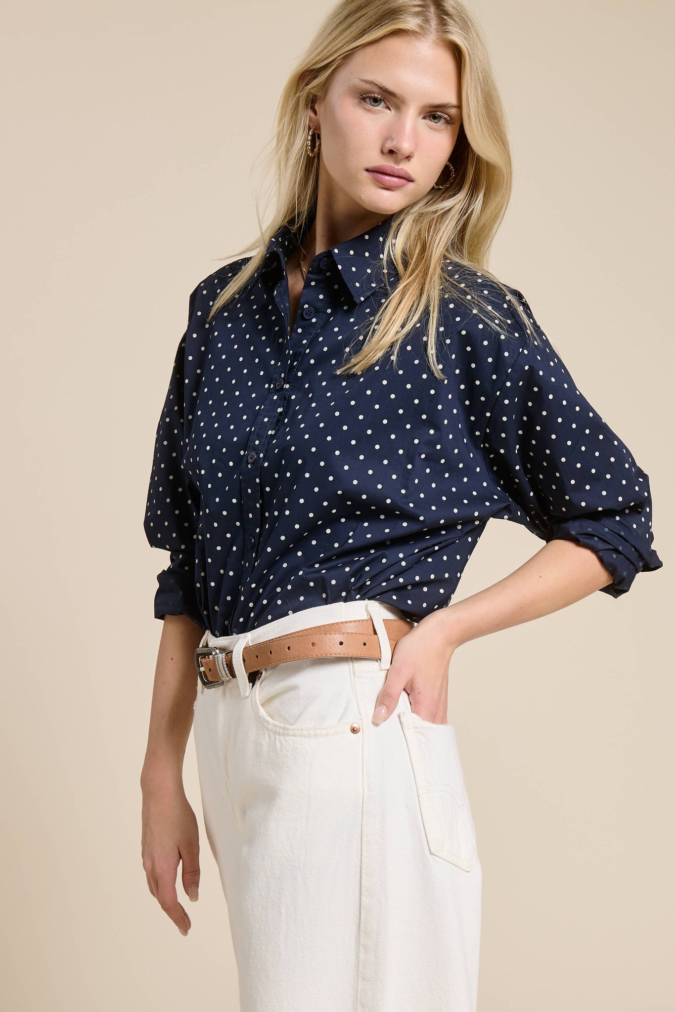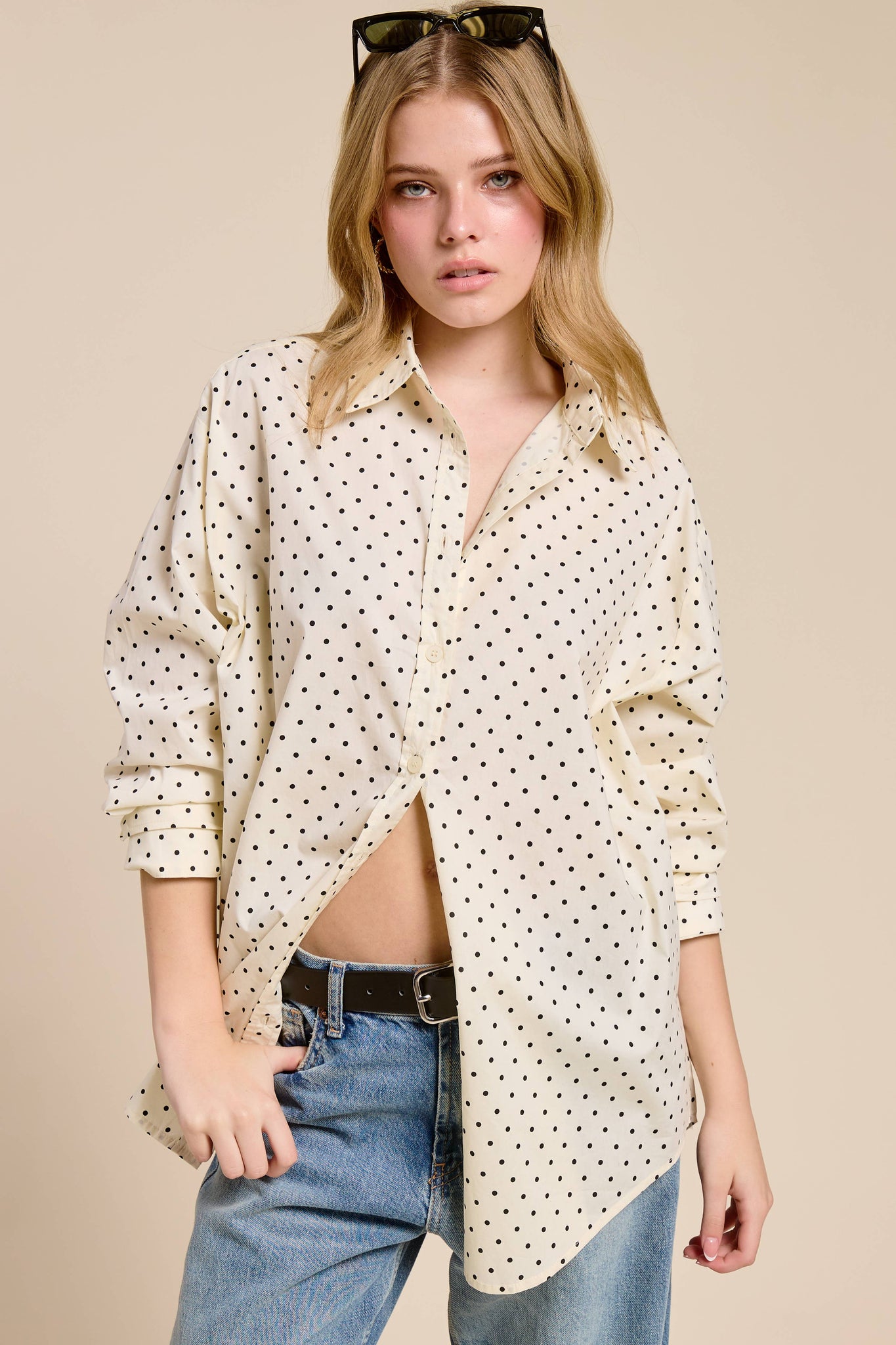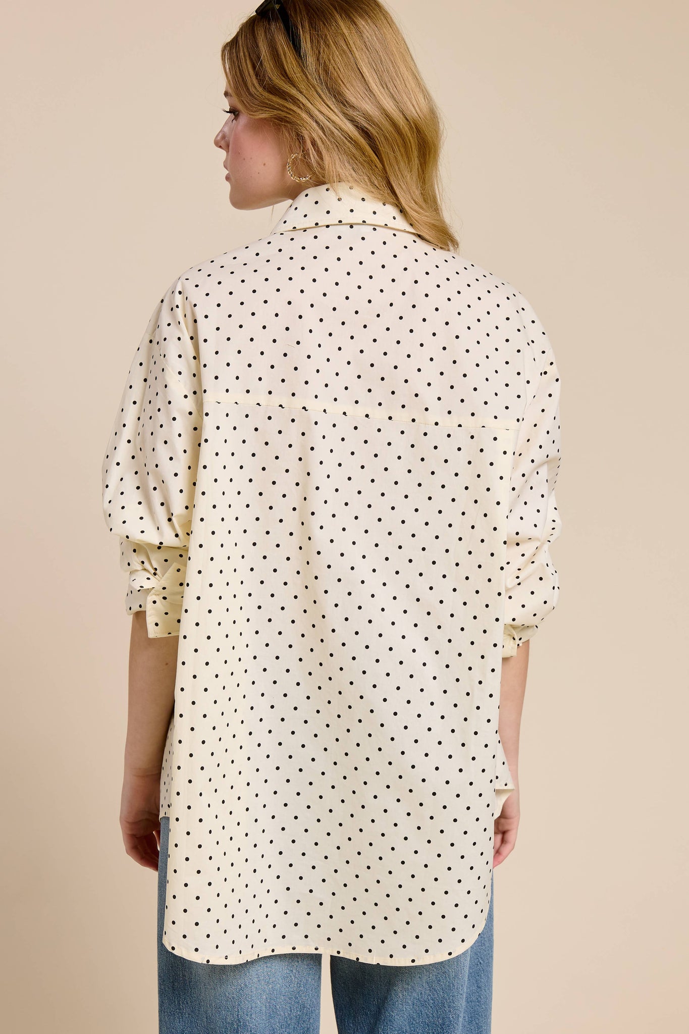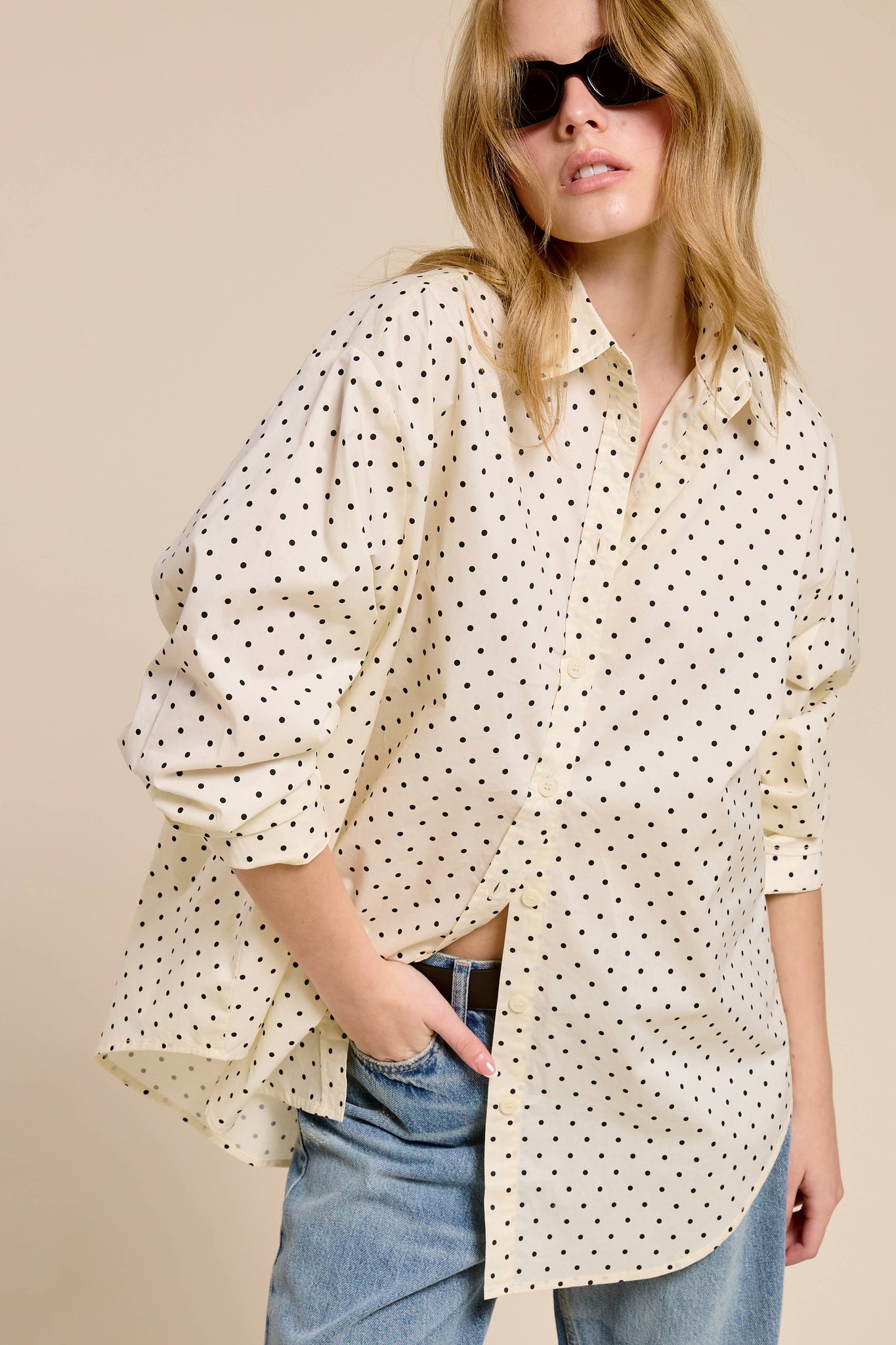 Lightweight polka dot shirt with an oversized fit and timeless appeal.