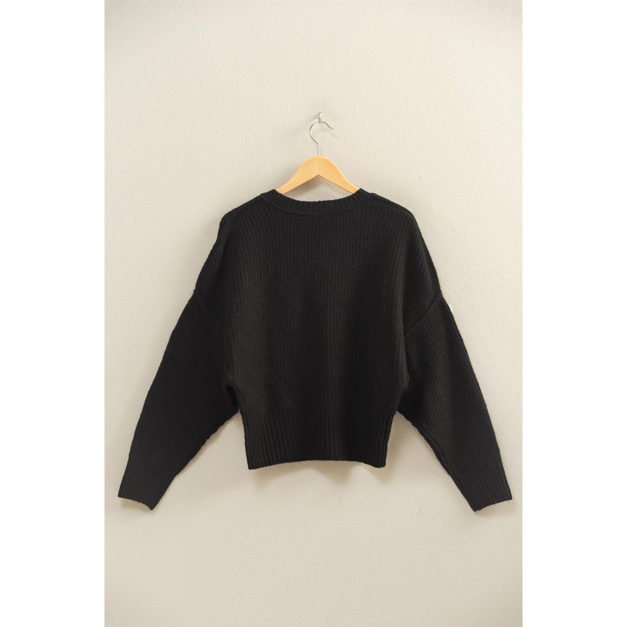 This ribbed crewneck sweater offers a timeless silhouette with long sleeves and a relaxed fit, ideal for comfy layering. Pair with distressed jeans or a sleek skirt for a stylish transition from office to evening outings. Perfect for those cooler days or adding a casual yet sophisticated touch to any ensemble. 52% polyester 45% acrylic 3% spandex Model Is 5' 7" Tall, 32" Chest, 25" Waist, 36" Hips And Wearing A Size Small