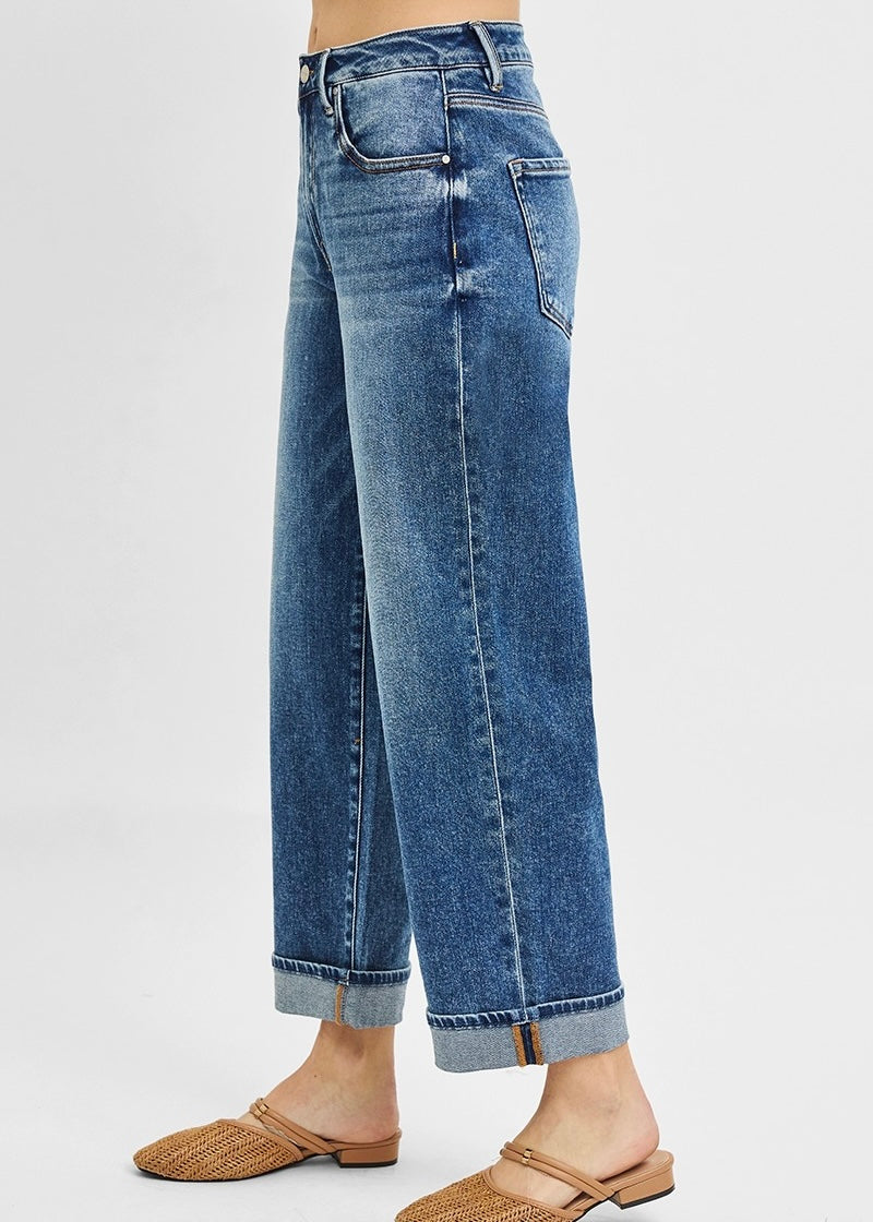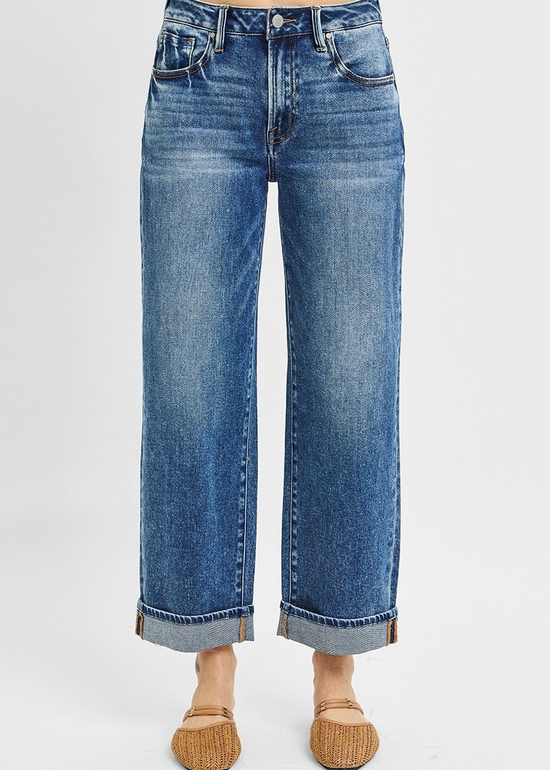 MID RISE ANKLE BOYFRIEND TURN UP CUFFED JEANS - Rise 10 1/2" | Inseam 26" (after cuff) 28" (before cuff) in size 3/26 - Model Info: Height 5'8" | Waist 24" | Hips 34" - Model is wearing size 1/25 - Cuff can be released
