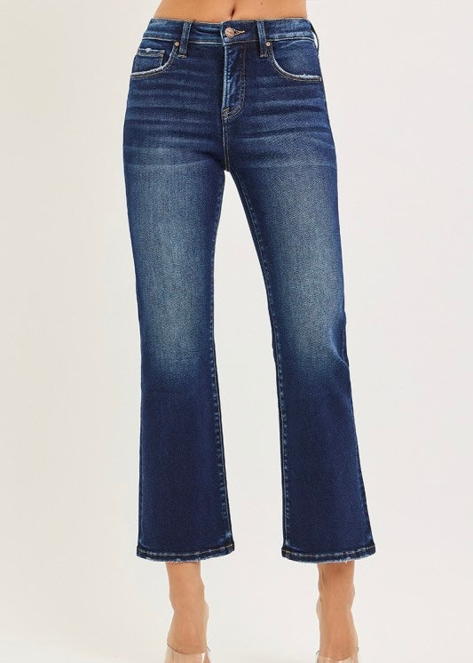 TUMMY CONTROL HIGH RISE CROP BOOTCUT JEANS - Rise 10" | Inseam 27" in size 3/26 - Model Info: Height 5'8.5" | Waist 24" | Hip 36" - Model is wearing size 1